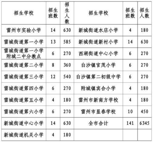 2020雷州市城区小学招生计划是什么(雷州市城区小学一年级招生方案2020)