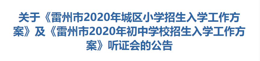 关于雷州市2020年中小学招生入学方案听证会的公告
