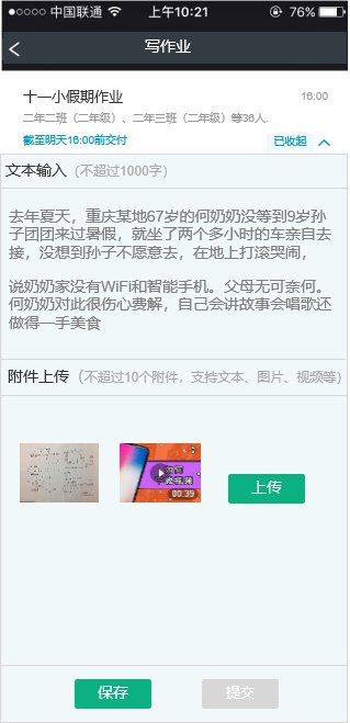 ❶点击写作业,在文本输入框和附件上传区域进行操作。文本输入时不要超过总字数;