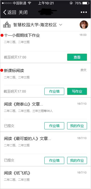 收到新作业时,会有红点提醒,作业展示顺序按照默认为时间倒叙排列,展示作业名称、发送对象,发送时间,截至时间;
