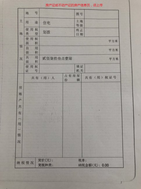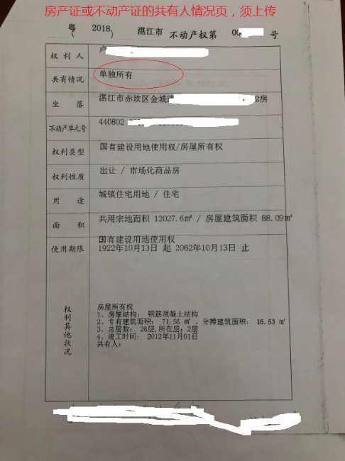 (4)房产证(不动产证)传3页:封面页、房产信息页、共有情况页。