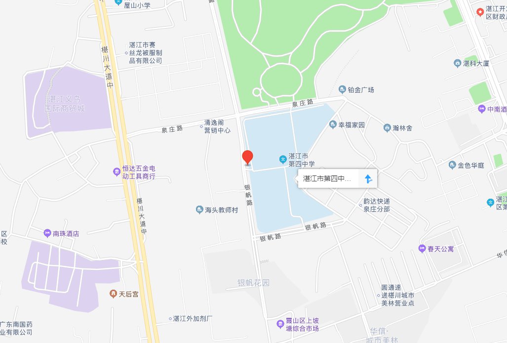 2.湛江市第四中学(新校区):霞山区银苑路2号湛江市第四中学