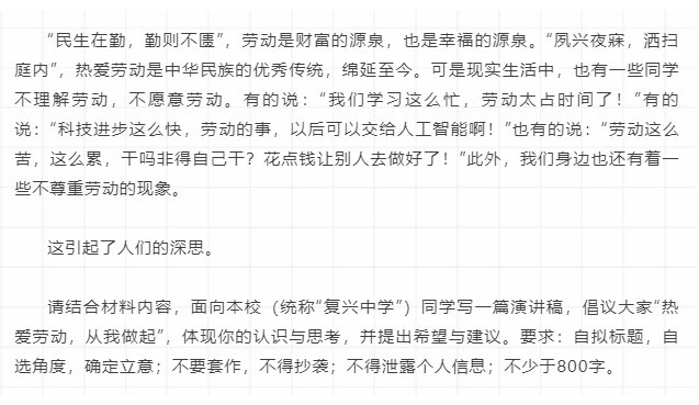 要求:结合材料,选好角度,确定立意,明确文体,自拟标题;不要套作,不得抄袭;不得泄露个人信息;不少于800字。