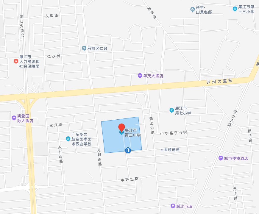 管辖路段:南市北路、廉江大道中、黄村街、三中南门至中环二路、三中南门至塘山中路、罗州大道中、廉南路
