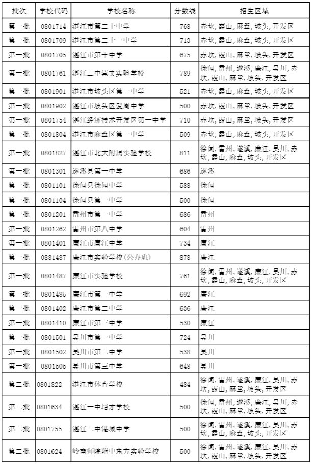 湛江市2019年高中录取分数是多少(2019年湛江市高中录取分数线)