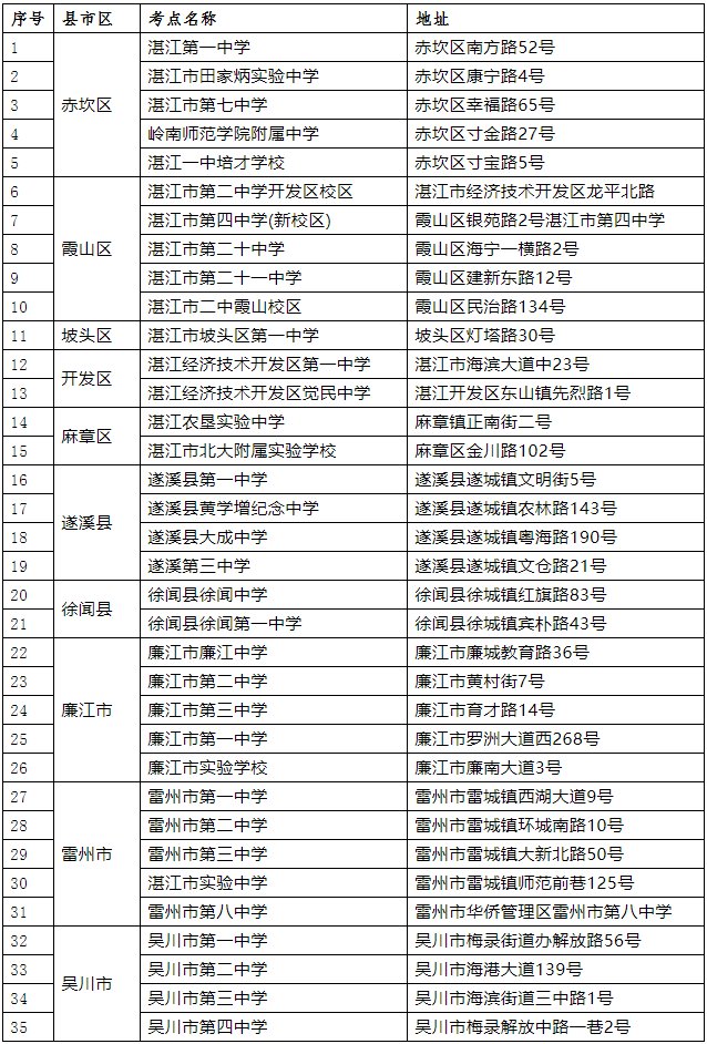 2020湛江市高考考场分布一览 湛江今年高考时间