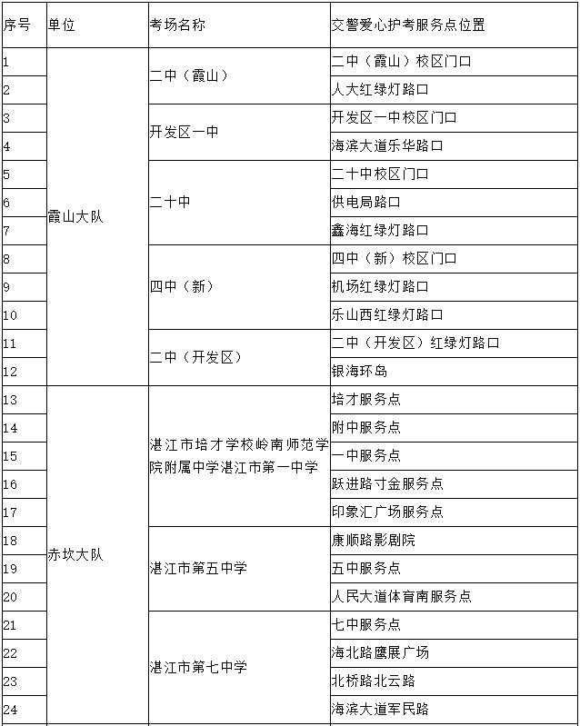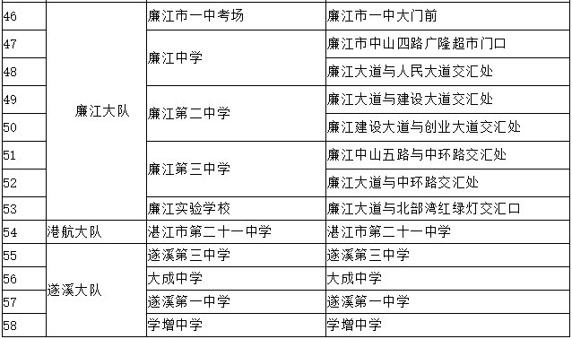 2020湛江高考交警护考服务岗点分布 湛江交警招聘