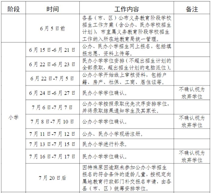 注:因疾病、出国等特殊原因逾期未参加小学招生报名的,其父母可于7月20日至21日登录一年级预报名系统补报名。