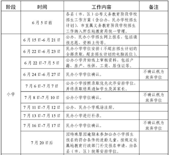 湛江市小学阶段学校招生人学工作日程安排(2020年)