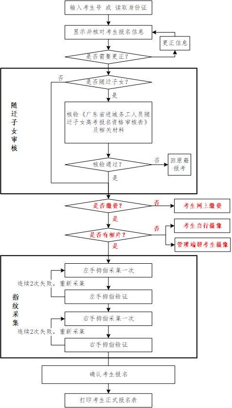 网上审核结果为待验证的补报名考生,须在规定时间内提交身份证、户口簿、学籍学历等证明材料原件到报名点进行复核校验。具体时间另行通知。复核过程中,如发现考生报考材料造假,将取消考生报考资格;已被院校录取的,将取消考生录取资格。