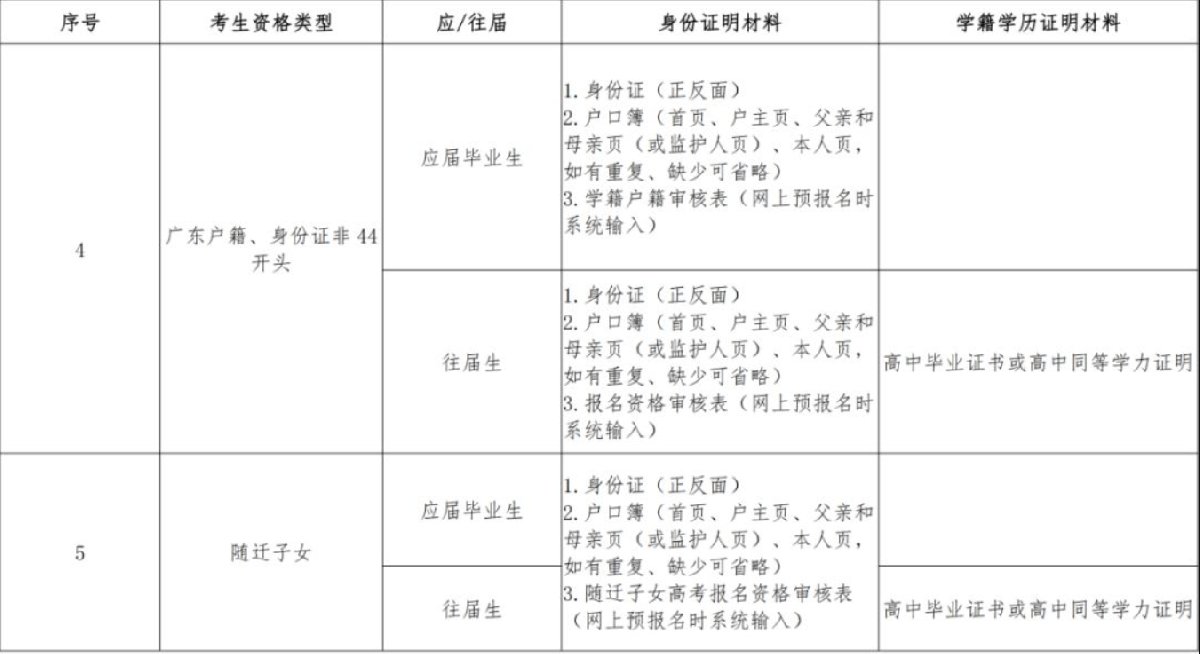 1.广东省2020年高考补报名考生需上传的审核材料列表