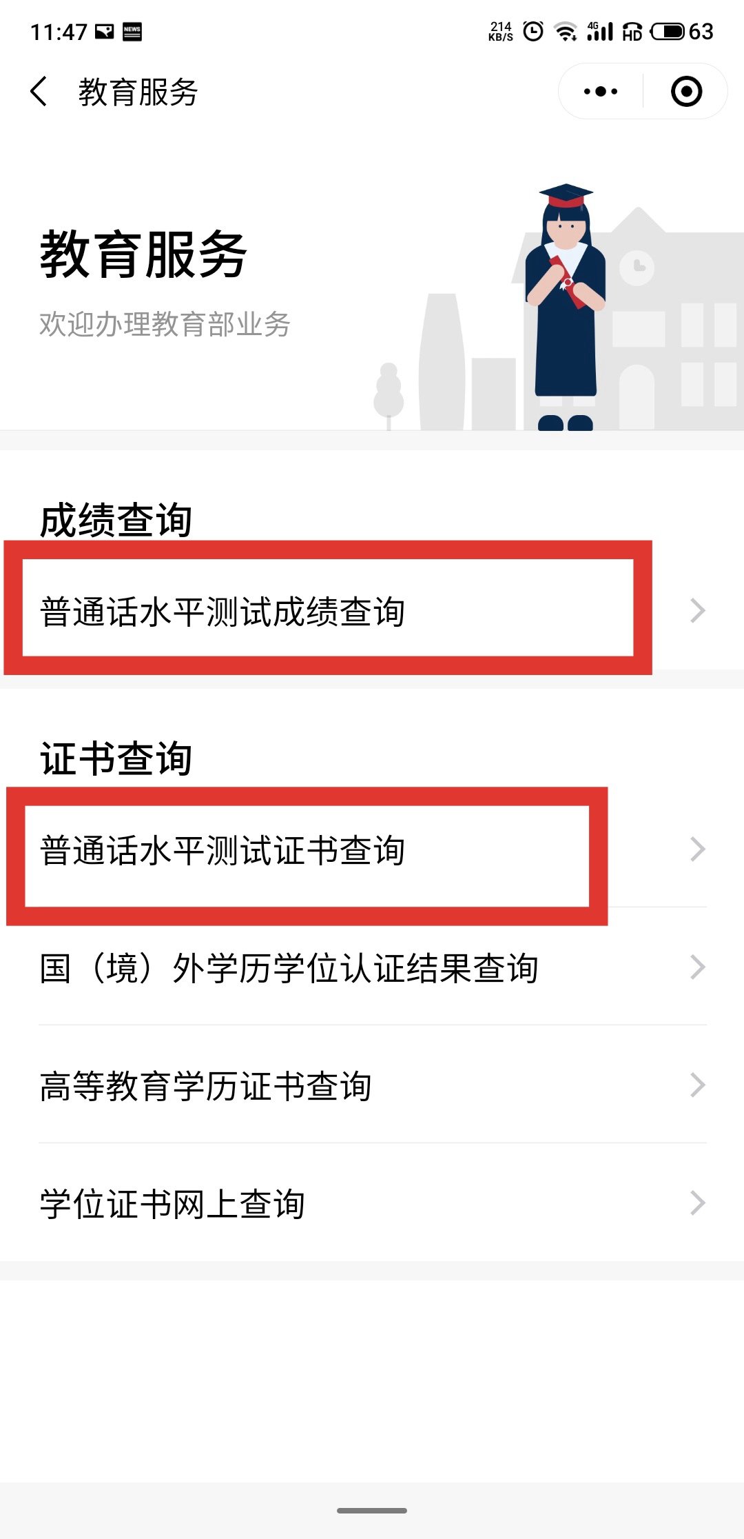 第二步:点击『普通话水平测试成绩查询』