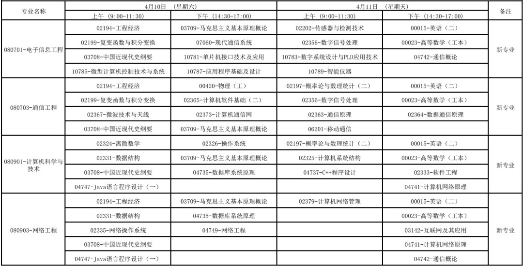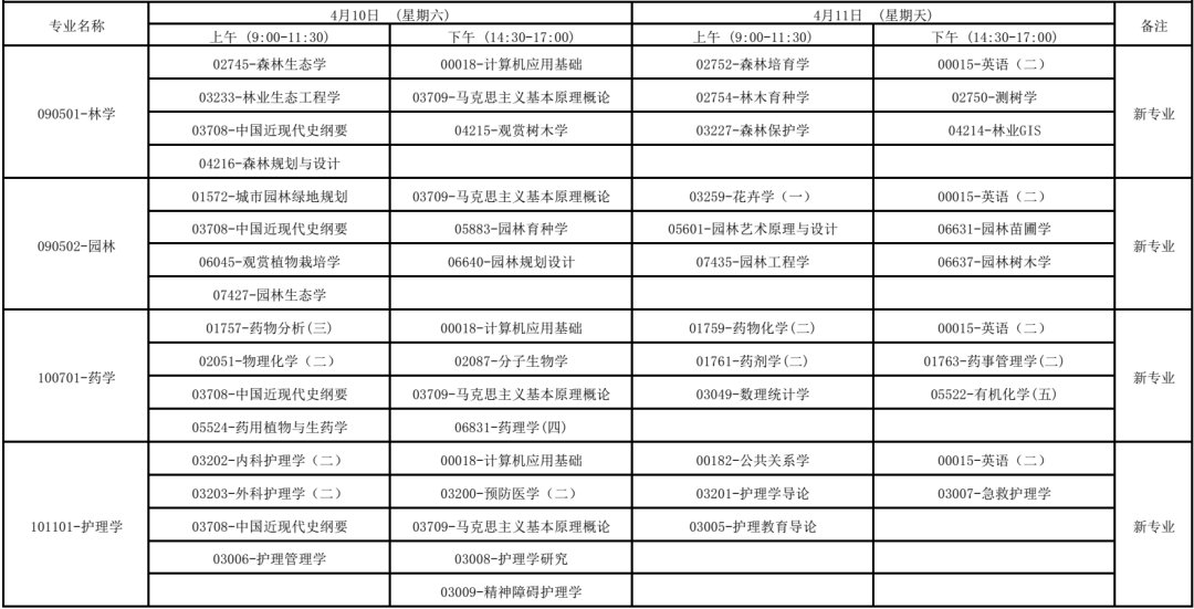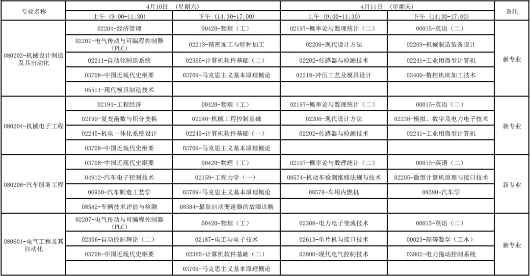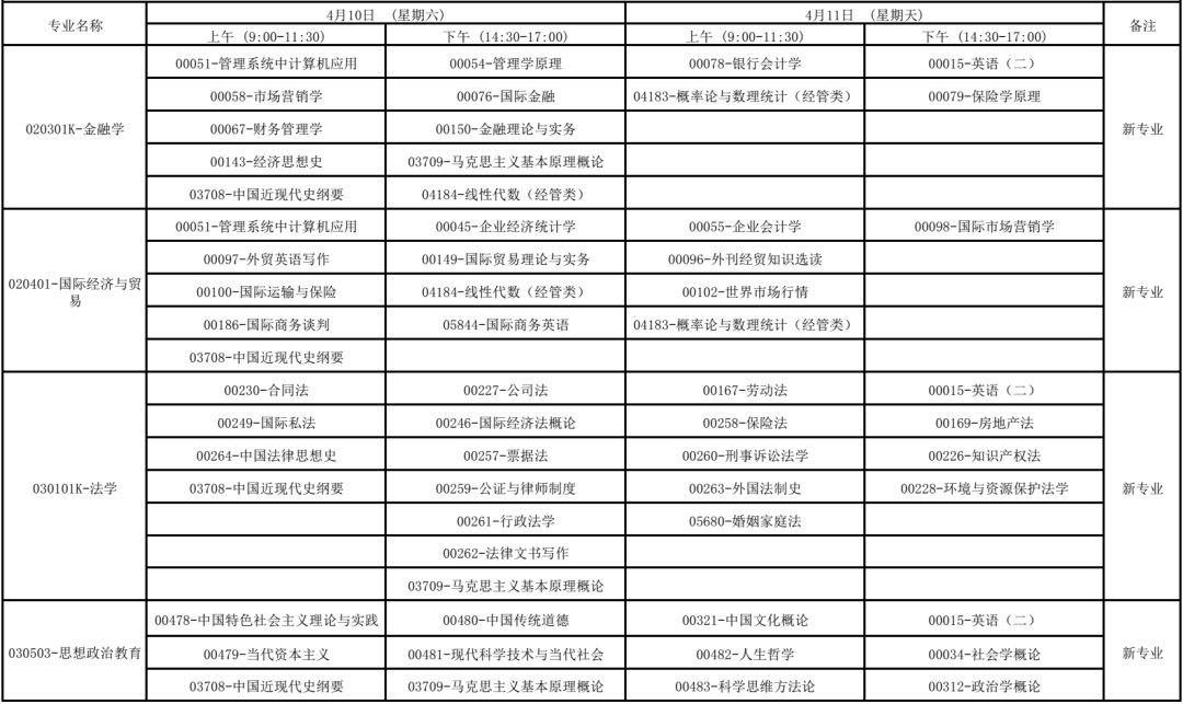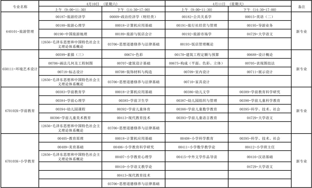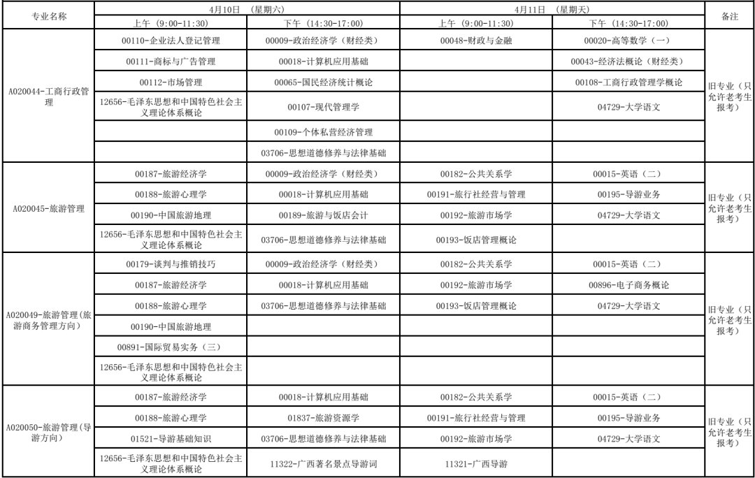 1.广西2021年高等教育自学考试4月课程考试时间安排表
