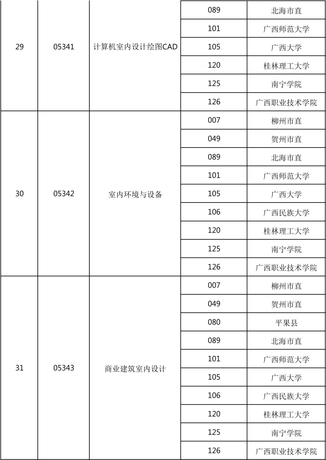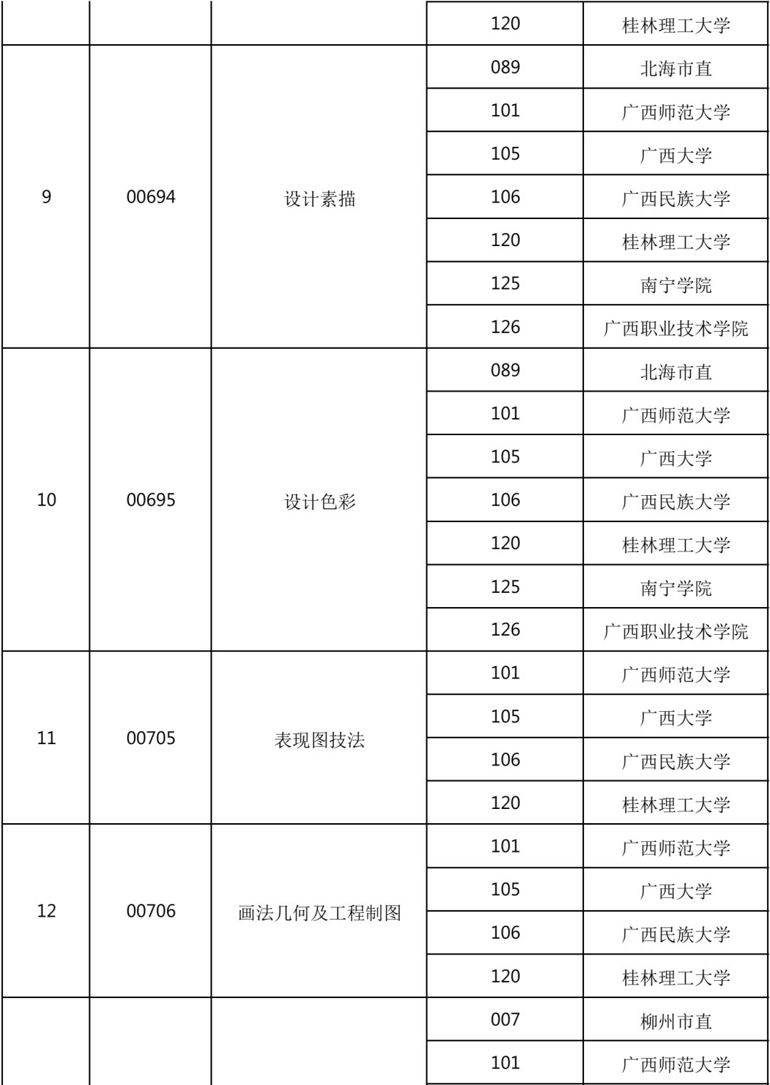 2.广西2021年高等教育自学考试4月特殊课程考试地点安排表