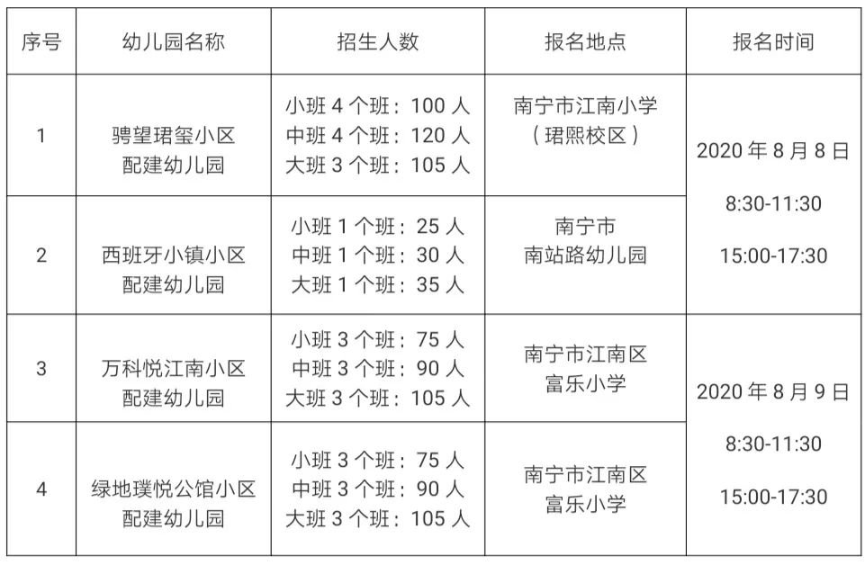 2020年南宁江南区公办幼儿园招生计划及时间安排
