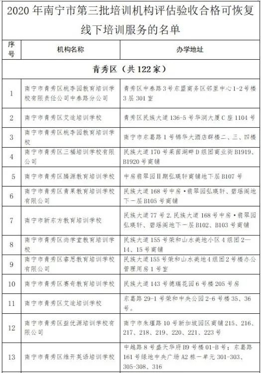 本批次新增216家验收合格校外培训机构名单公布如下: