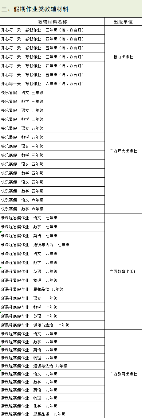 南宁市教育局发布《南宁市2019年秋季 中小学教辅材料推荐公告目录的通知》。