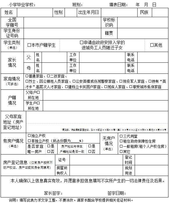 2021年南宁市城区小学一年级新生报名信息采集表