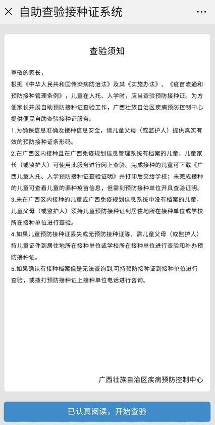 广西入托入学接种证查验证明网上查询流程