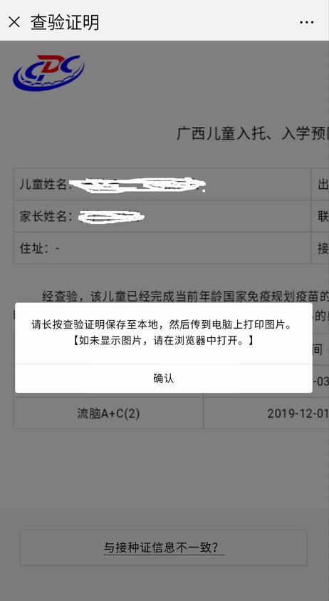只要在广西区内打预防针,有预防接种证,并且完成了当前年龄国家免疫规划疫苗接种的儿童,就可以用微信打印查验证明。