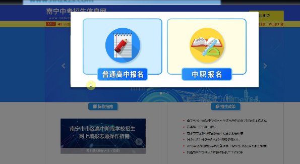 一、进入南宁中考招生信息网后,登录志愿填报报名入口