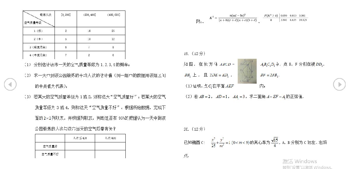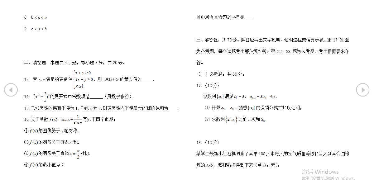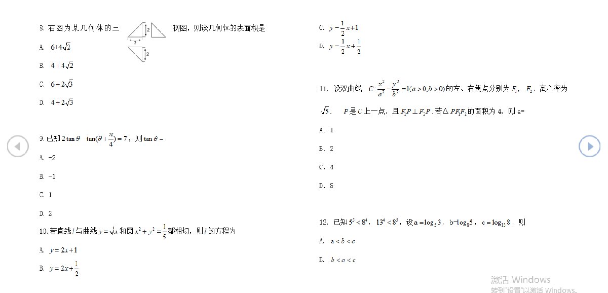 2020年广西高考理科数学真题试卷及答案