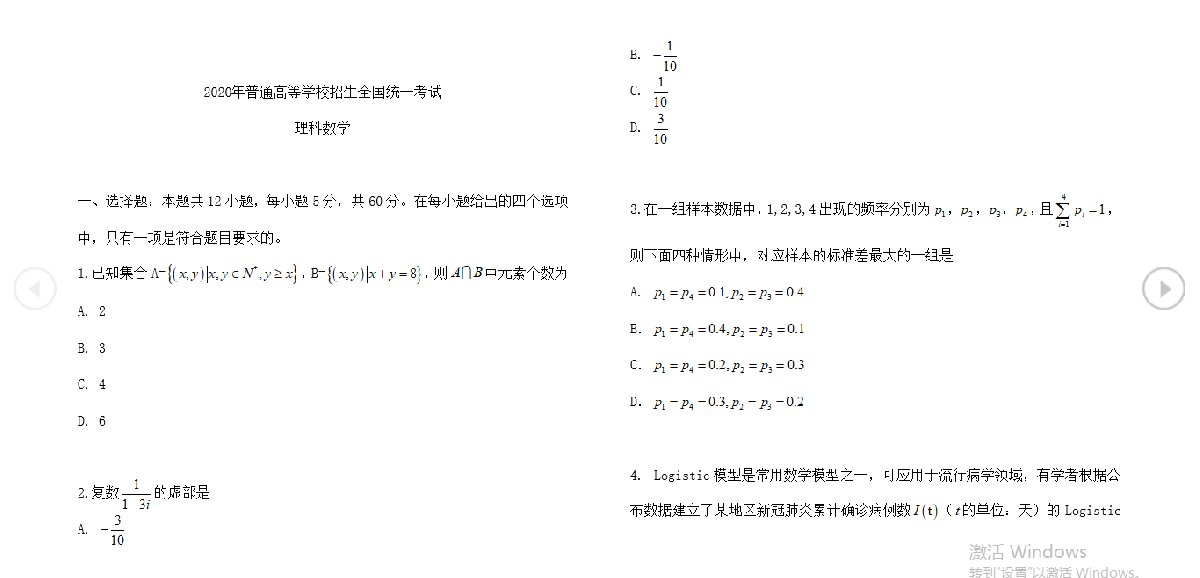 2020年普通高等学校招生全国统一考试理科数学