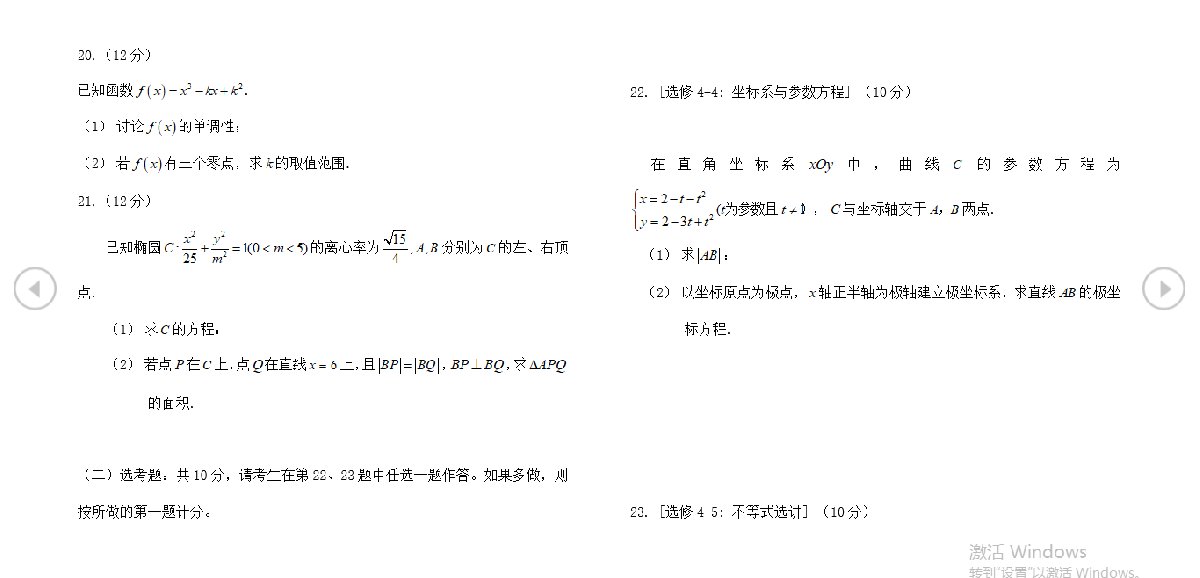 2020年广西高考文科数学真题试卷及答案