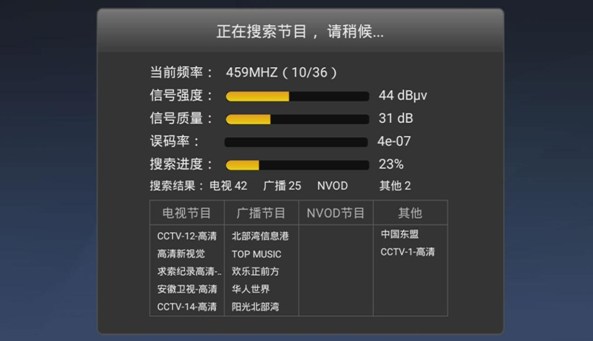 (2)不具备双向搜索的机顶盒会弹出单向搜索界面,如下图所示: