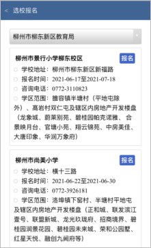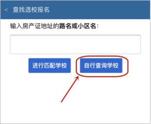 点击“自行查询学校”,选择该学校所辖城区教育局,找到对应学校,点击“报名”。