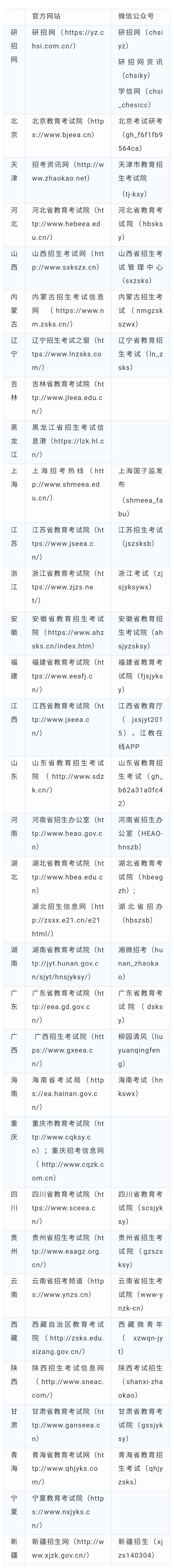 这里给大家准备了全国的考试院官网网址,供大家查询。如果以下网址显示无法打开,可以尝试百度“省份+教育考试院”搜索。