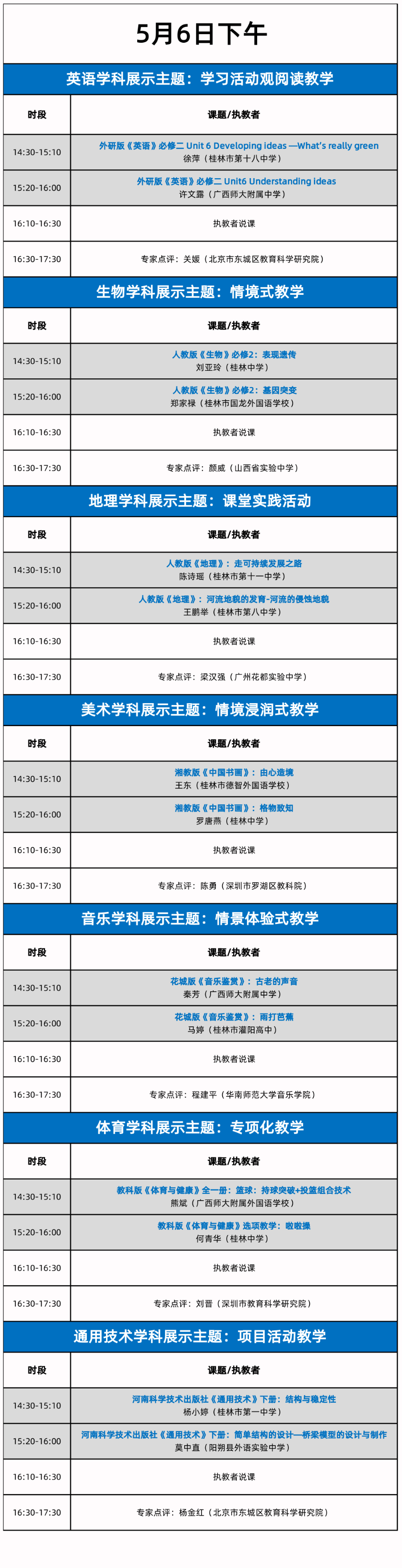 六、课例展示安排时间
