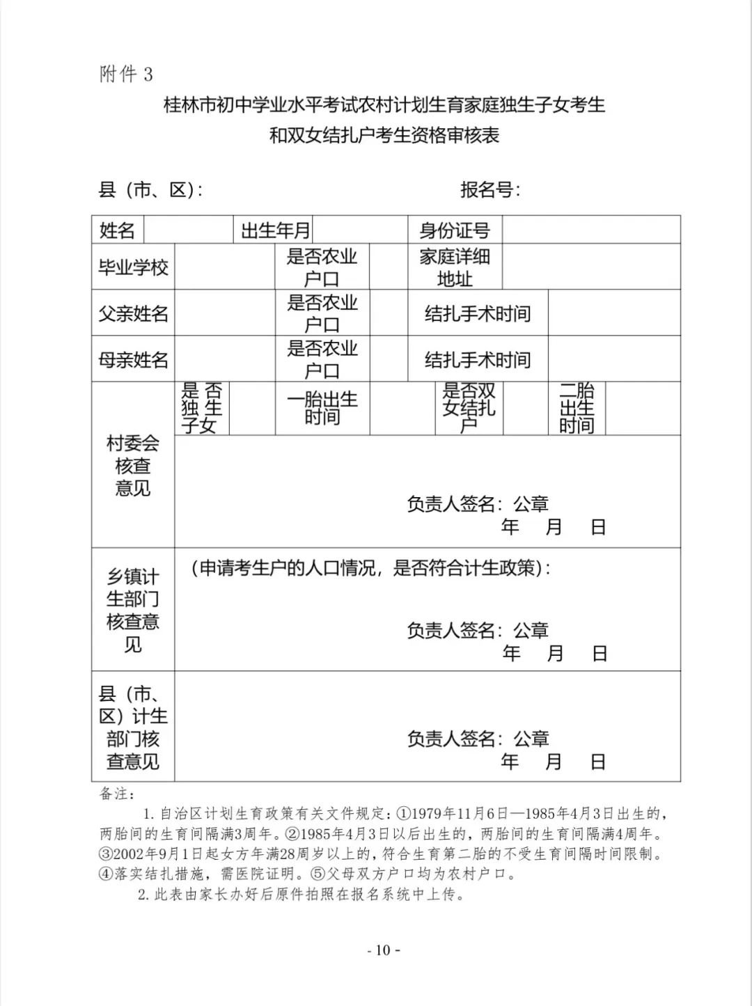 4. 初中历届毕业生、同等学力者及上一年度没有在桂林市参加过地理、生物学科考试的九年级考生还必须参加地理、生物学科考试。