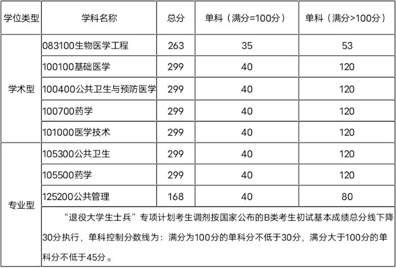 6.报考“退役大学生士兵”专项计划的考生,申请调剂到普通计划录取,其初试成绩须达到调入地区相关专业所在学科门类(专业学位类别)的全国初试成绩基本要求。符合条件的,可按规定享受退役大学生士兵初试加分政策。