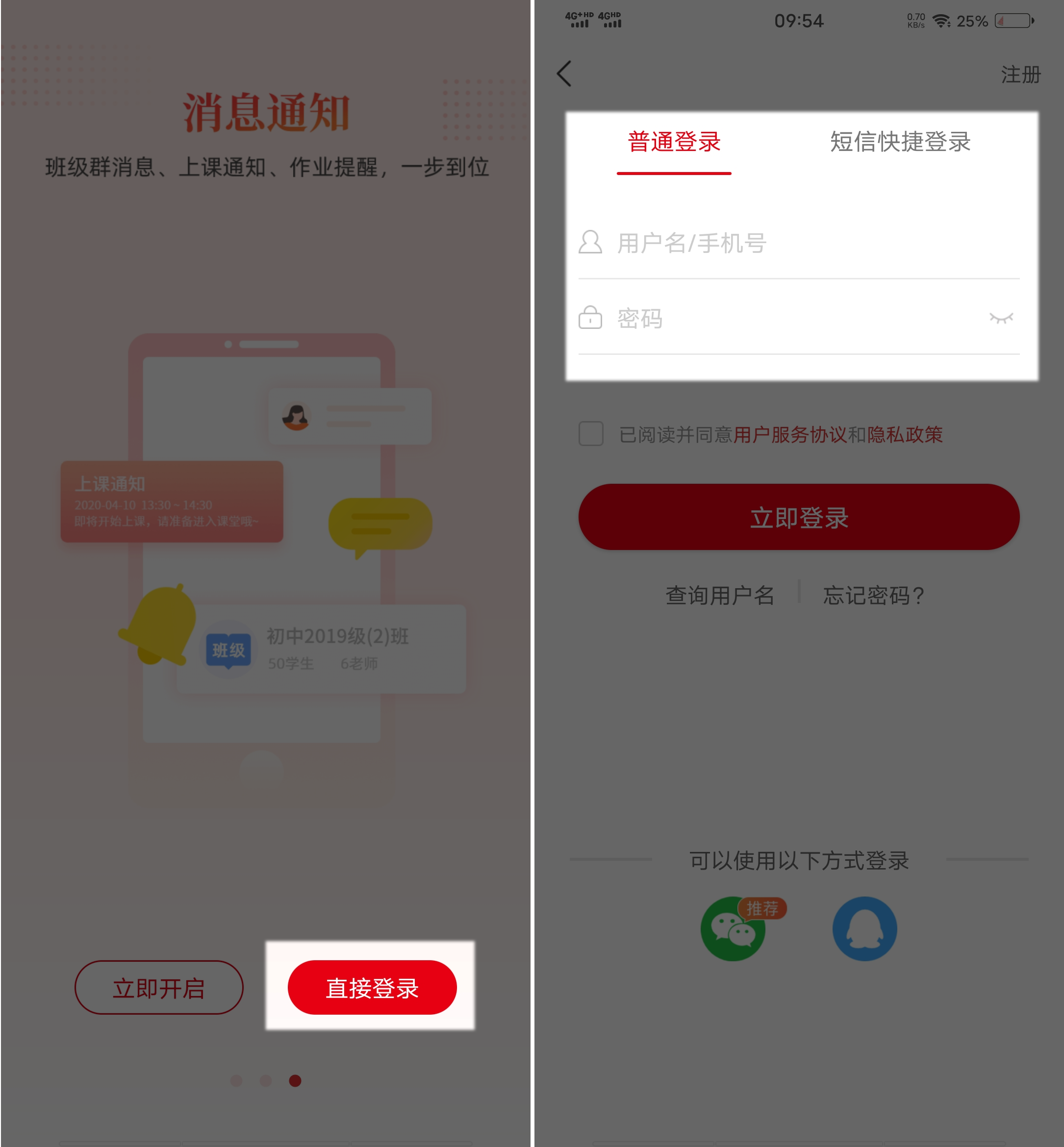 在课后网APP中,输入账号密码即可登录。也可使用短信快捷登录。