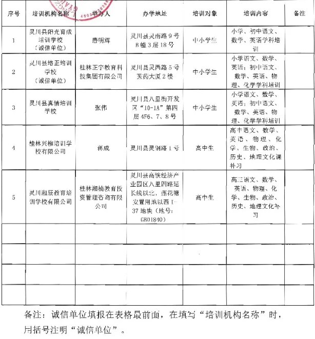 桂林市灵川县校外培训机构白名单(桂林灵川县私立学校)