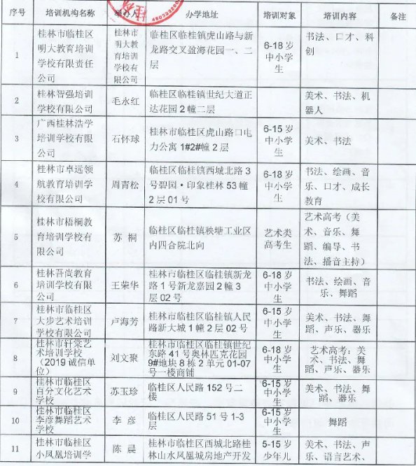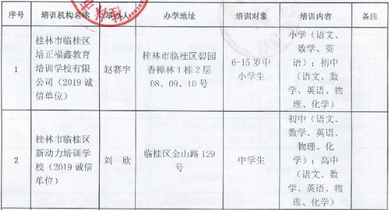 桂林市临桂区校外培训机构白名单 临桂培训学校