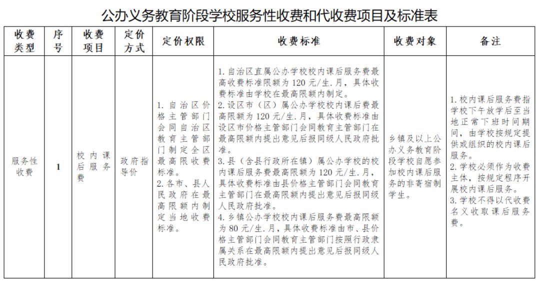 广西中小学服务性收费和代收费标准 关于公布广西公办学校教育项目收费清单的通知