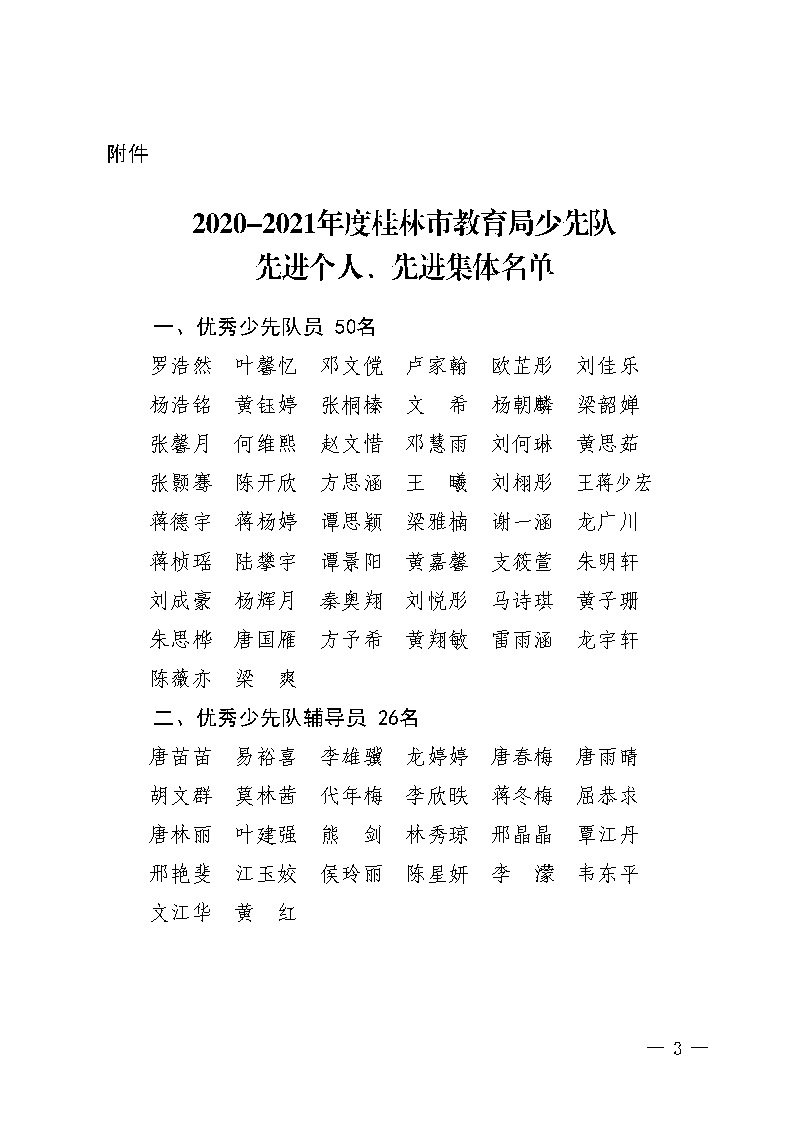 2020-2021年度桂林市教育局少先队先进个人、先进集体名单