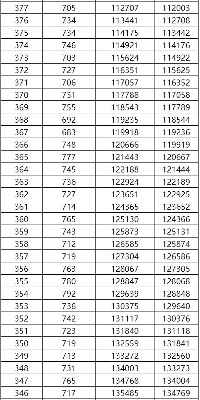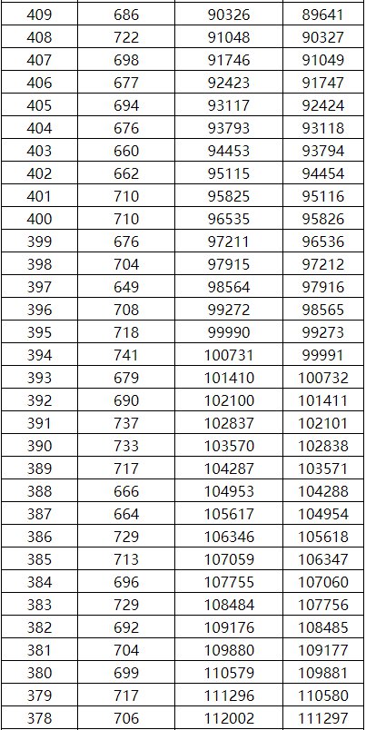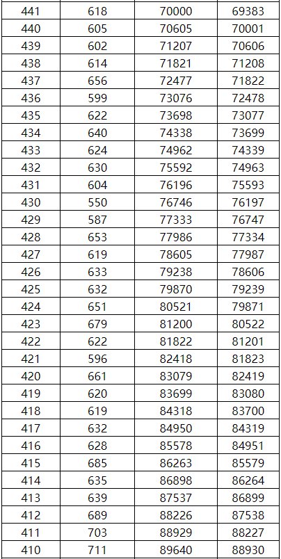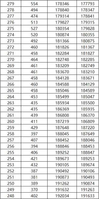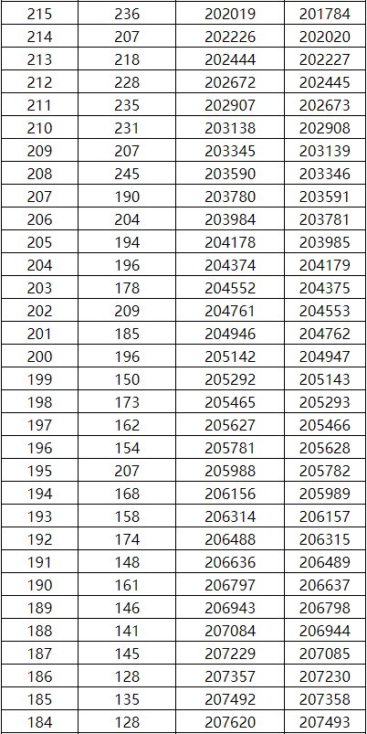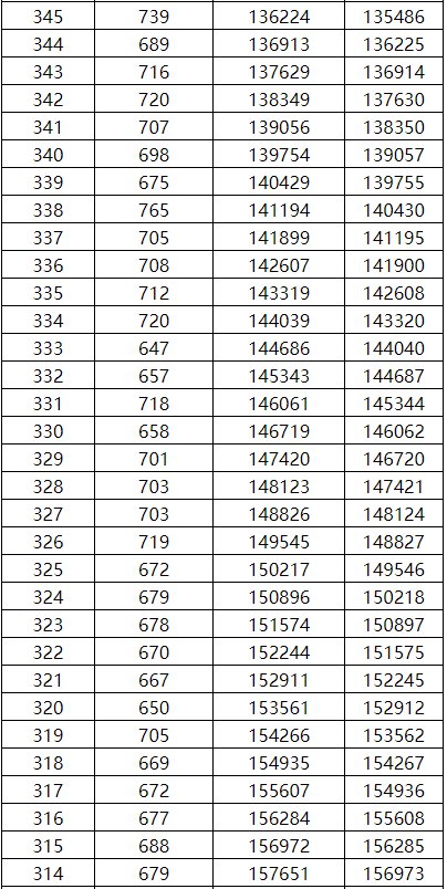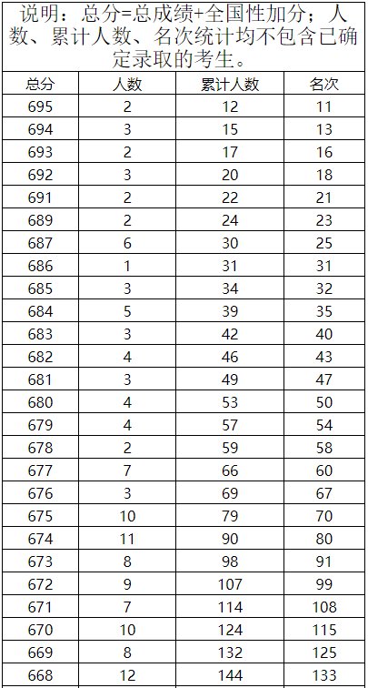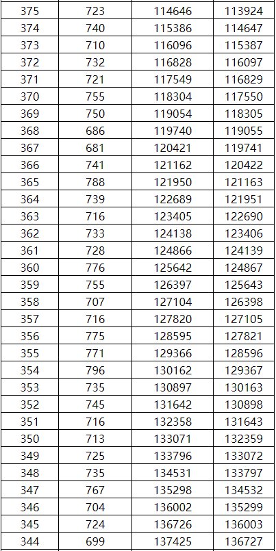 工类一分一档表(总分=总乘机+全国性加分)
