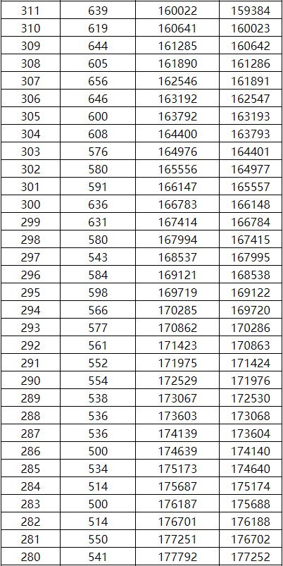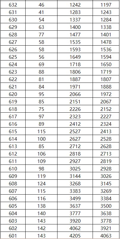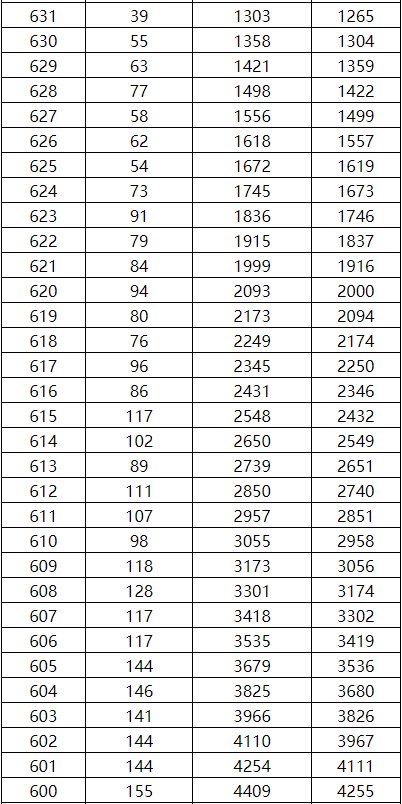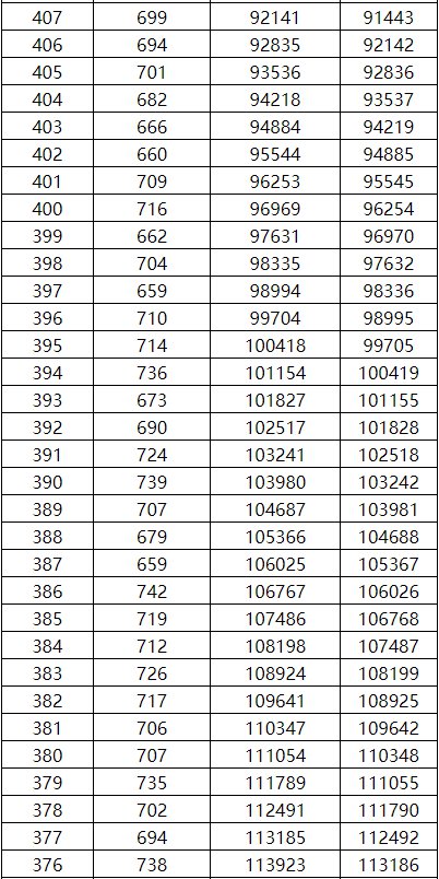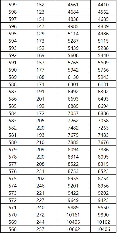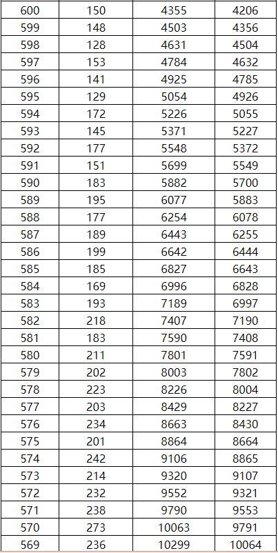 2021年广西高考理工类一分一档表 2020年广西高考理工类一分一档表