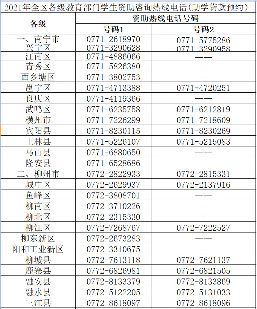 3.拨打自治区高校学生资助热线0771-5815566、5815296咨询(7月1日至9月30日的工作日开通);