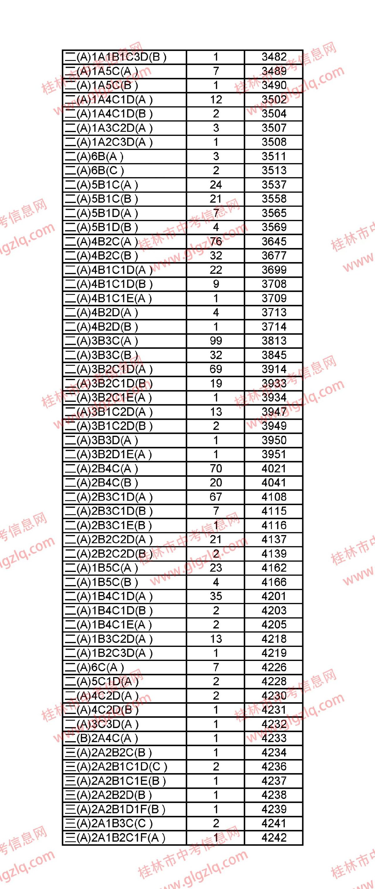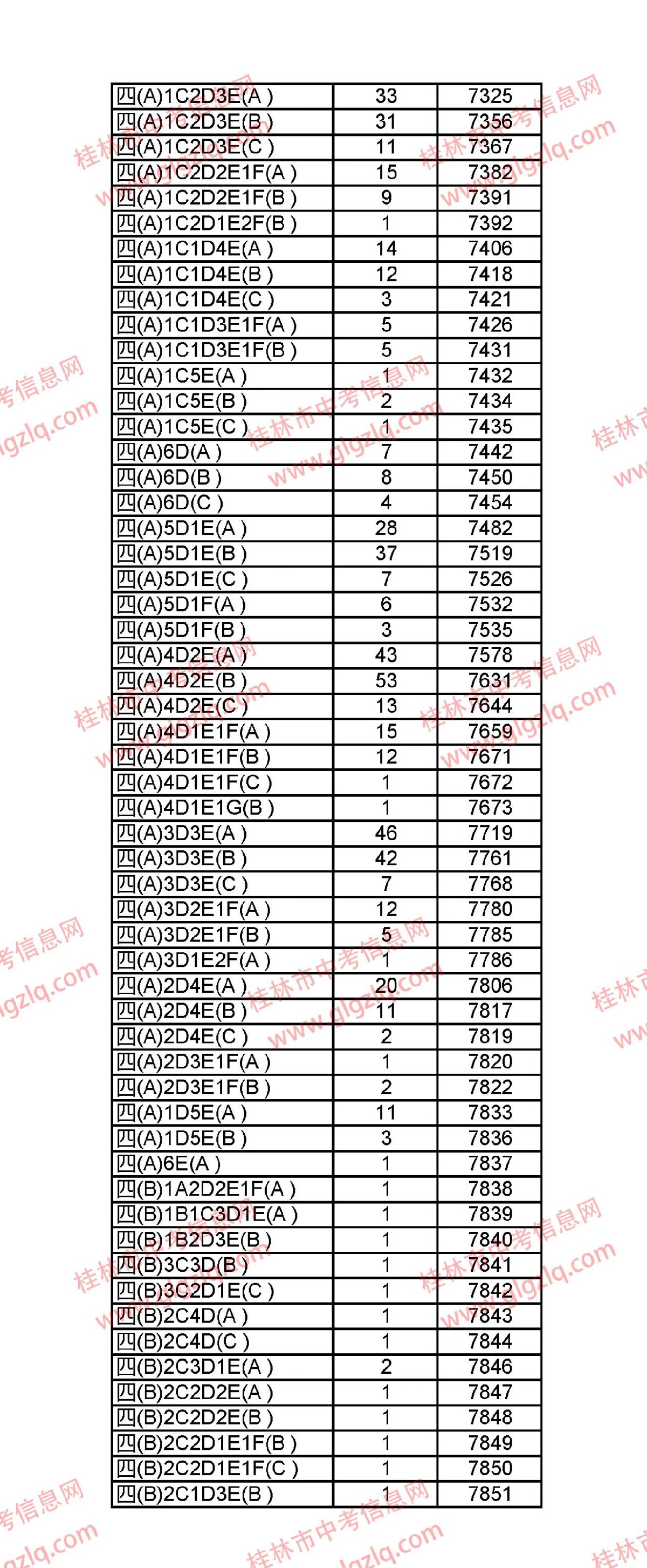 2021年桂林五城区中考一分一段表 桂林市2021年中考一分一档