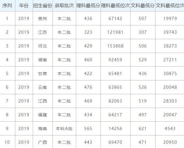 2019年广西民族师范学院各省录取批次、文理科最低分及录取位次