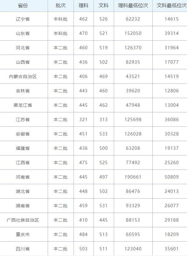 2019年桂林旅游学院各省录取分数线及录取位次