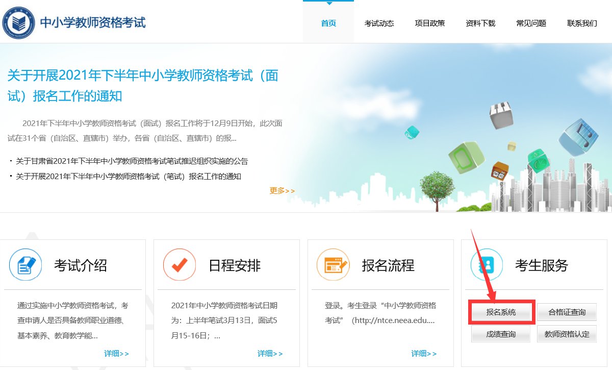 考生可在报名时间内登录中小学教师资格考试网进行报名。