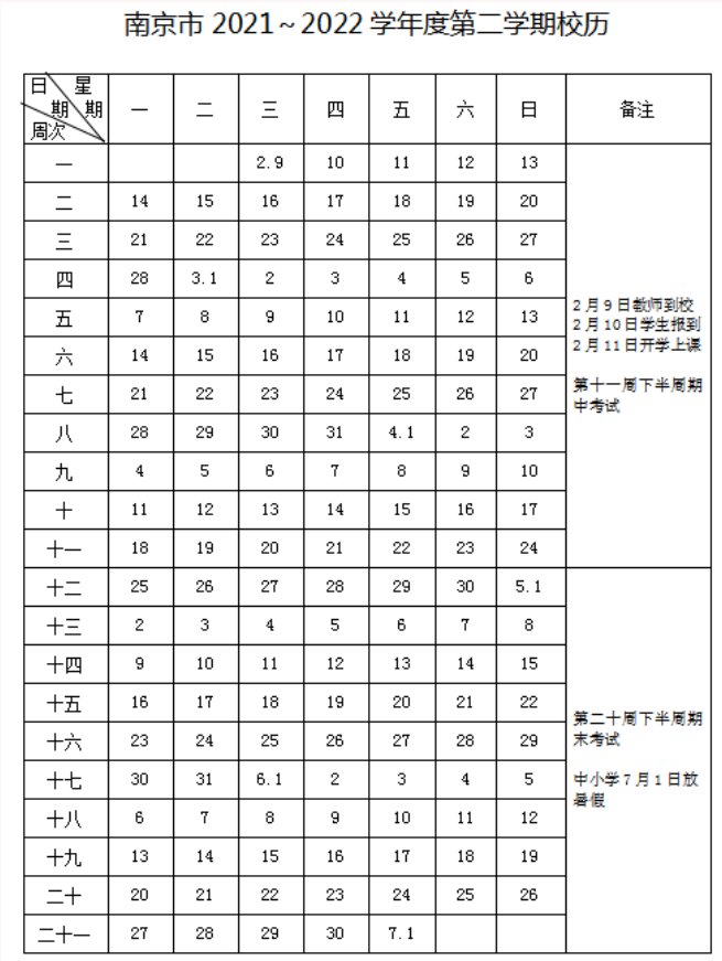 根据南京市2021~2022学年度校历可知: