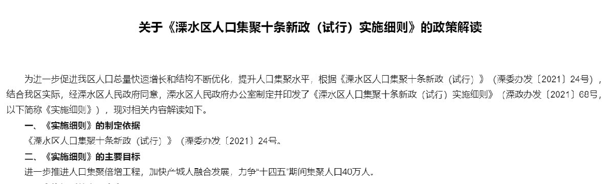 政策来源:《溧水区人口集聚十条新政(试行)实施细则》