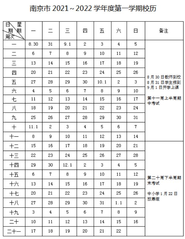 根据南京市2021~2022学年度校历可知: