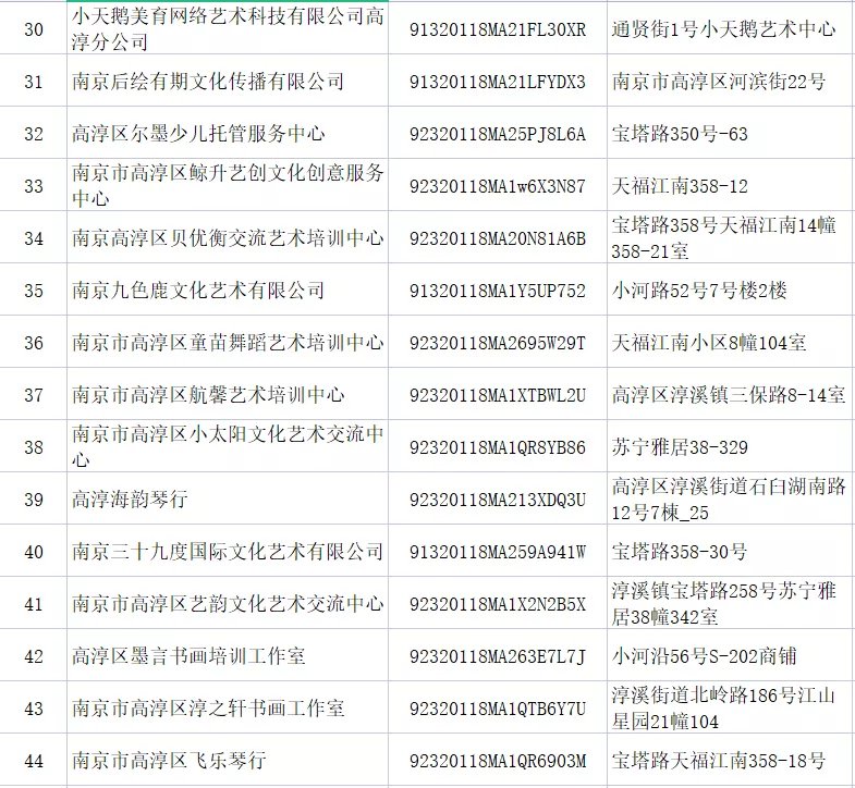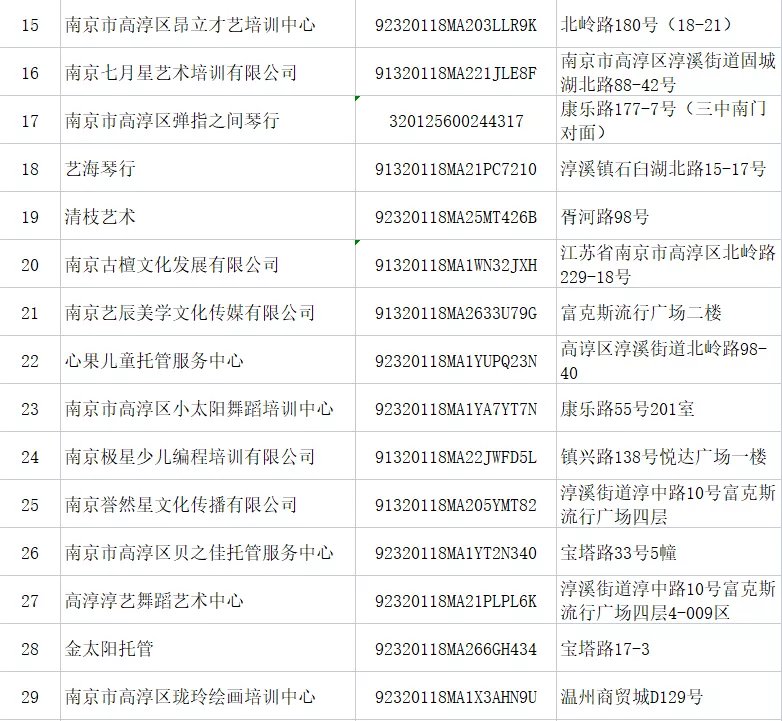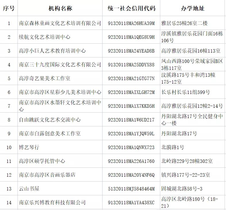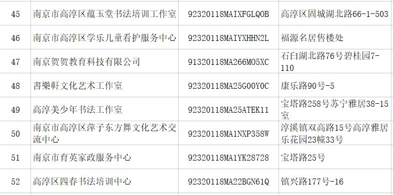 南京市高淳区第四批准许恢复线下培训的社会培训机构名单